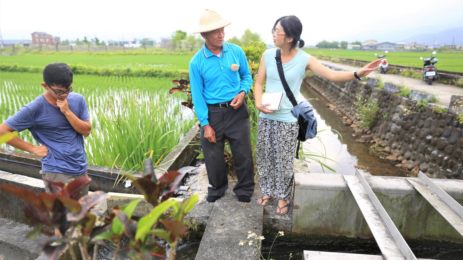 為了掌握更多在地生態與環境的資訊,幫助農村梳理記憶脈絡,陳毅翰和林芳儀也在農閒之餘帶著年幼的女兒,開始和在地老農展開對談,協助盤點當地產業、水路與生物資源的變遷與現況。