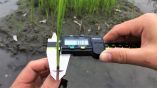 福壽螺對水稻大小秧的危害程度實驗,藉以測量大秧的植株大小。(圖片提供/陳毅翰)