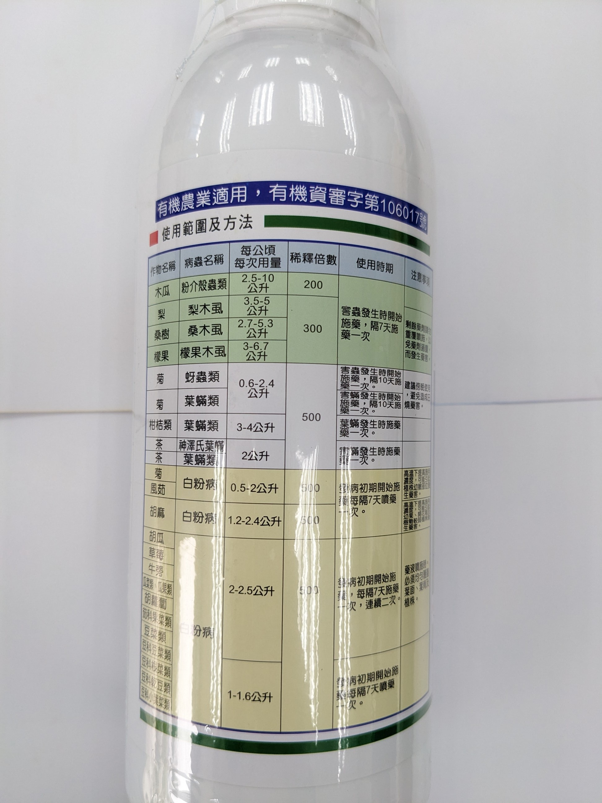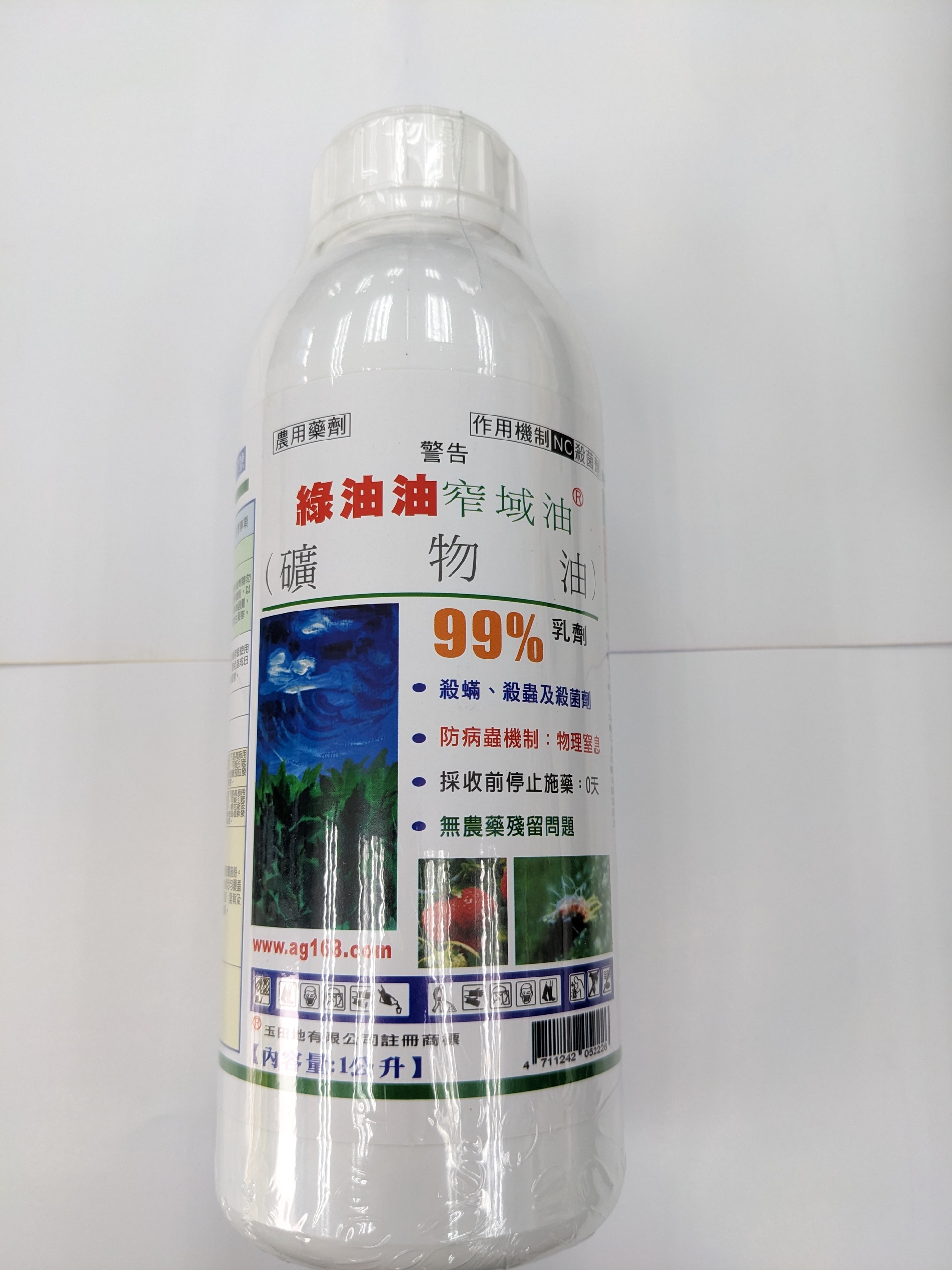 有效成份: 99% Mineral Oil EC 礦物油 防治: 紅蜘蛛、白蜘蛛、介殼蟲、蚜蟲、銹蜱、木蝨、潛葉蛾、白粉病、油斑病、煤污病、銹病、灰黴病 漁護署有機耕作支援組(OFSS)成員可享優惠價,每樽$210。